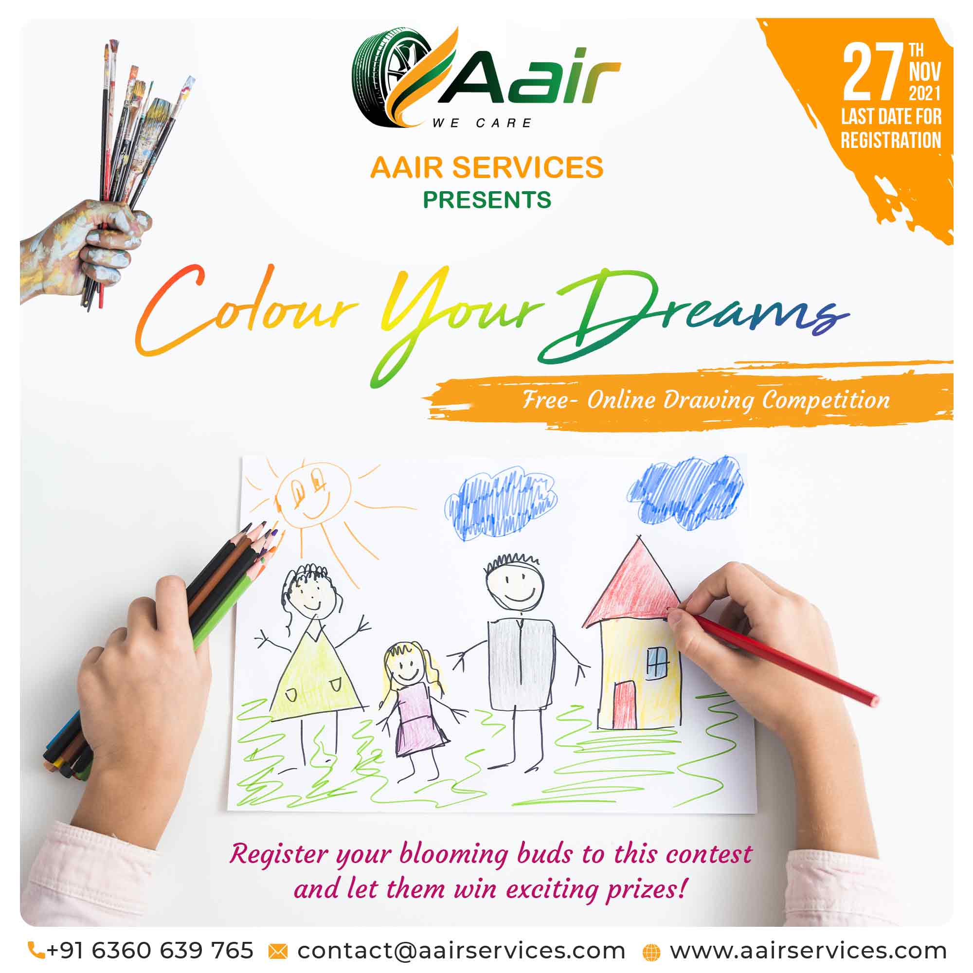 ‘Colour Your Dreams’ is a free online Drawing Competition our Company AAIR SERVICES has organized for the blooming buds of Bengaluru.